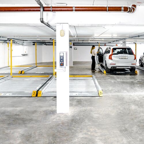 Dzięki naszym urządzeniom parkingowym podwoimy lub potroimy liczbę miejsc parkingowych na dostępnej przestrzeni. Dlatego często nazywane są one garażami dwupoziomowymi lub podwójnymi parkingami. Rzędy urządzeń parkingowych służą do niezależnego parkowania, samochody można parkować niezależnie w dowolnym momencie. Urządzenia parkingowe bez podszybia są przeznaczone do parkowania zależnego i są idealne do domów jednorodzinnych lub parkingów wielopoziomowych z funkcją parkowania przez obsługę.