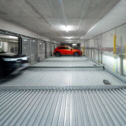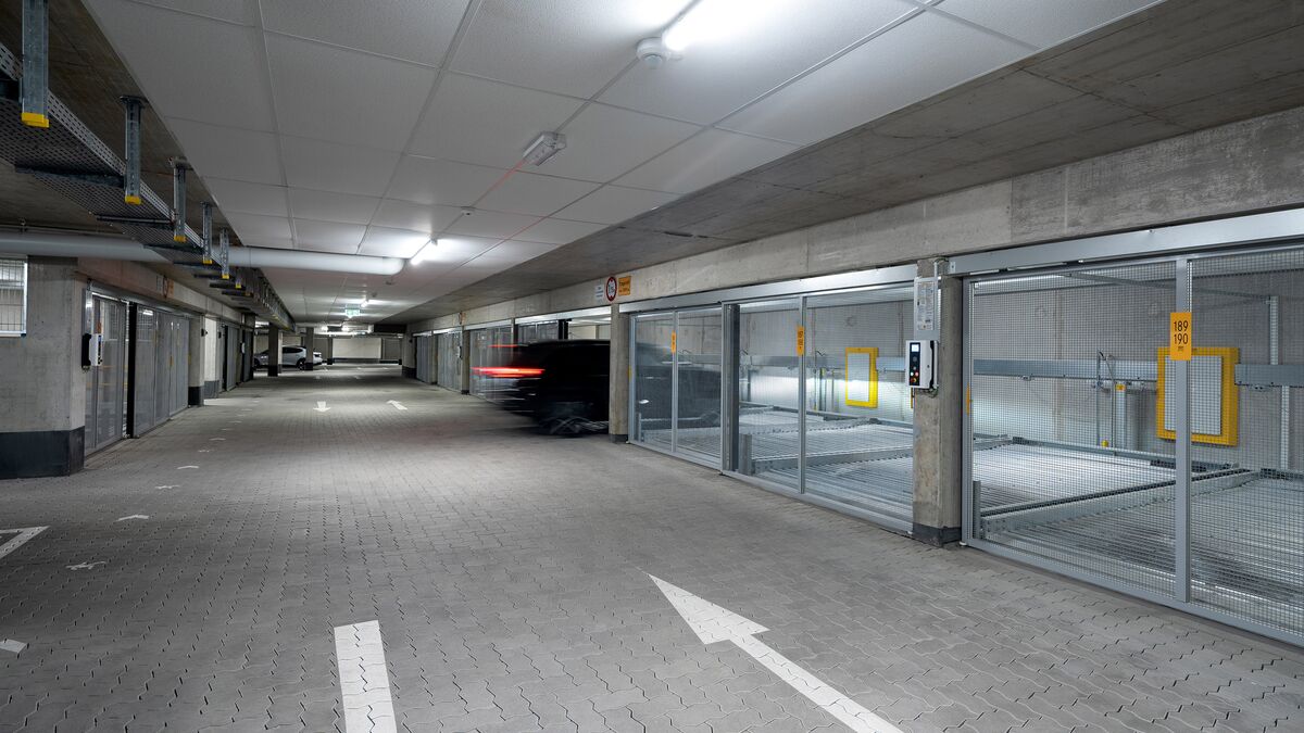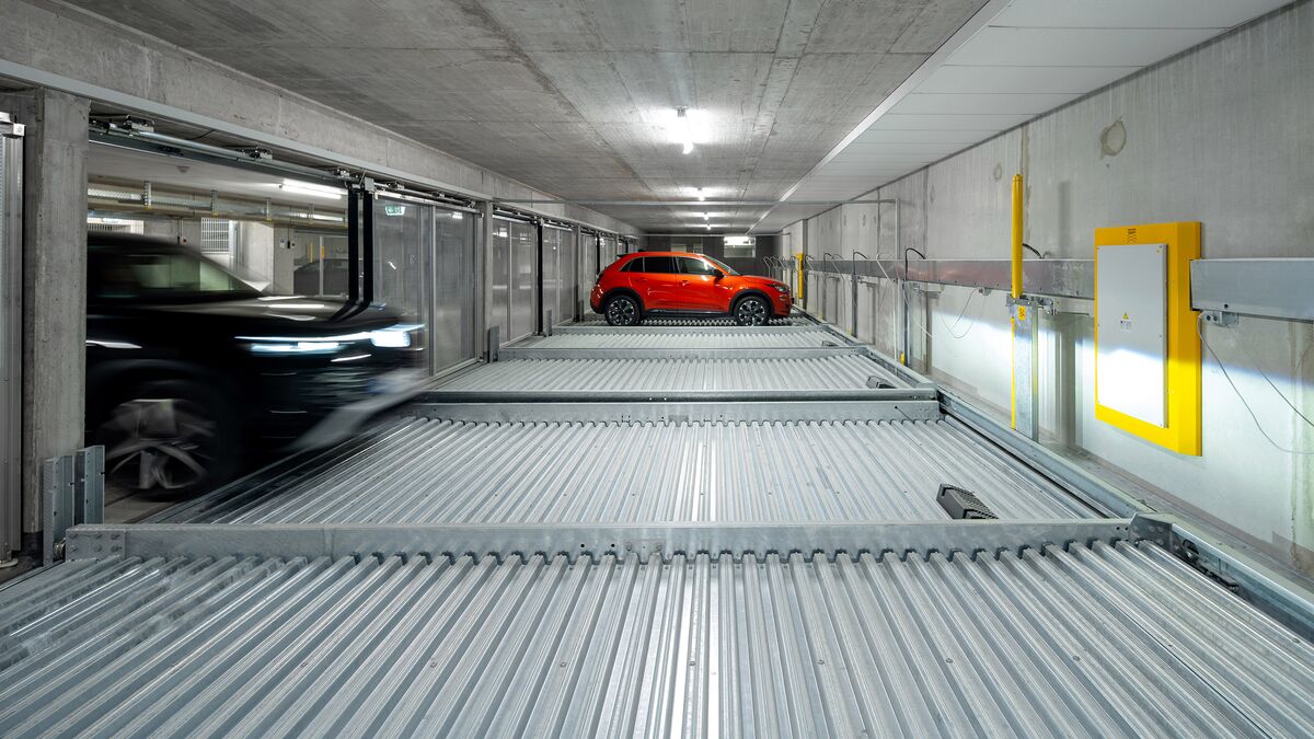 A central element of the project is the Turley Parking neighbourhood car park. Located beneath construction site IV, it offers over 200 public parking spaces. To accommodate as many vehicles as possible in a confined space, the semi-automatic WÖHR Combilift 542 parking solution is used here. A total of 11 systems provide 137 additional parking spaces – doubling the capacity in the same area.