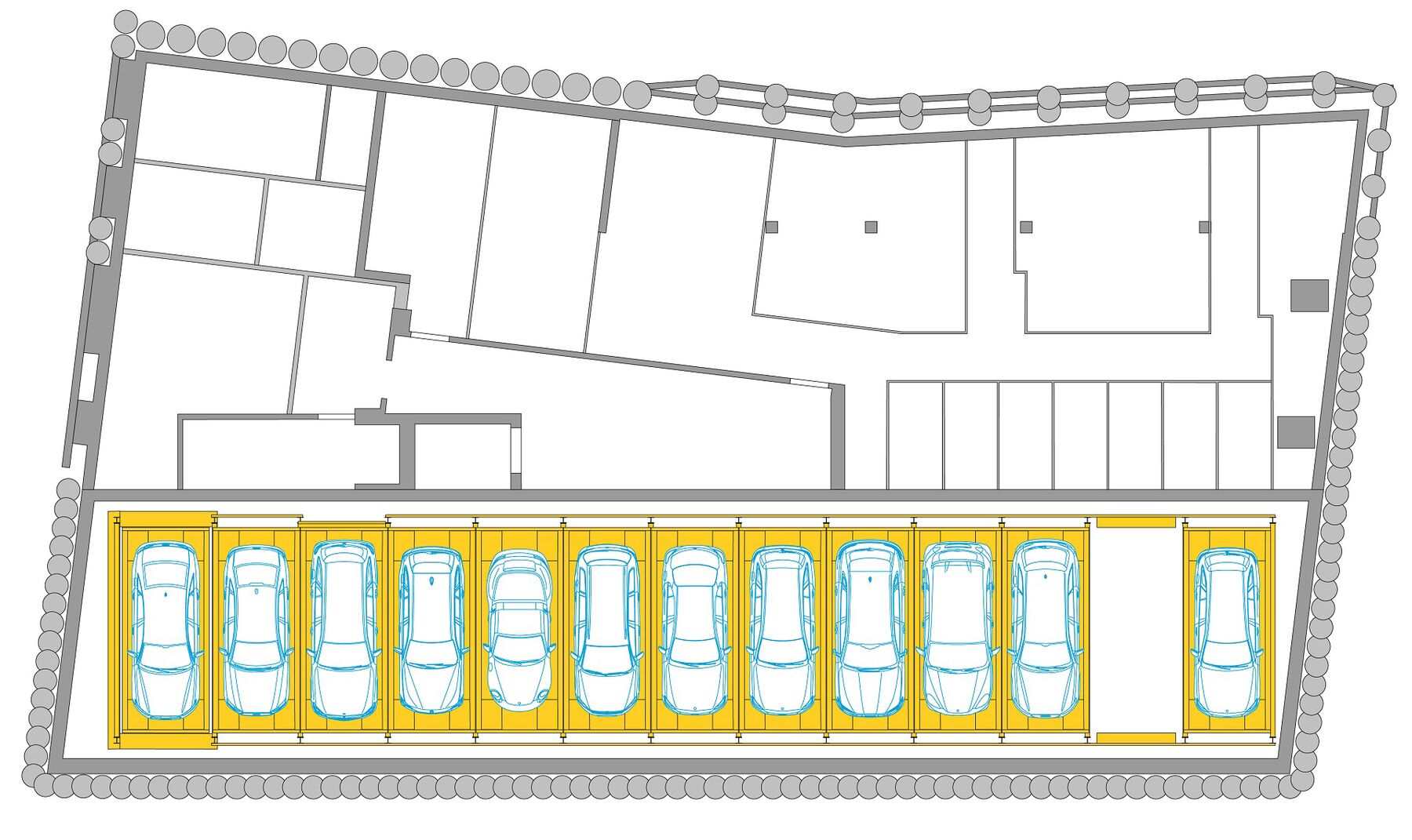 The installed Levelparker 590 offers residents 36 parking spaces on 3 underground parking levels. The total parking area of approx. 213 m² is thus optimally used, so that only approx. 5.90 m² are required per parking space.